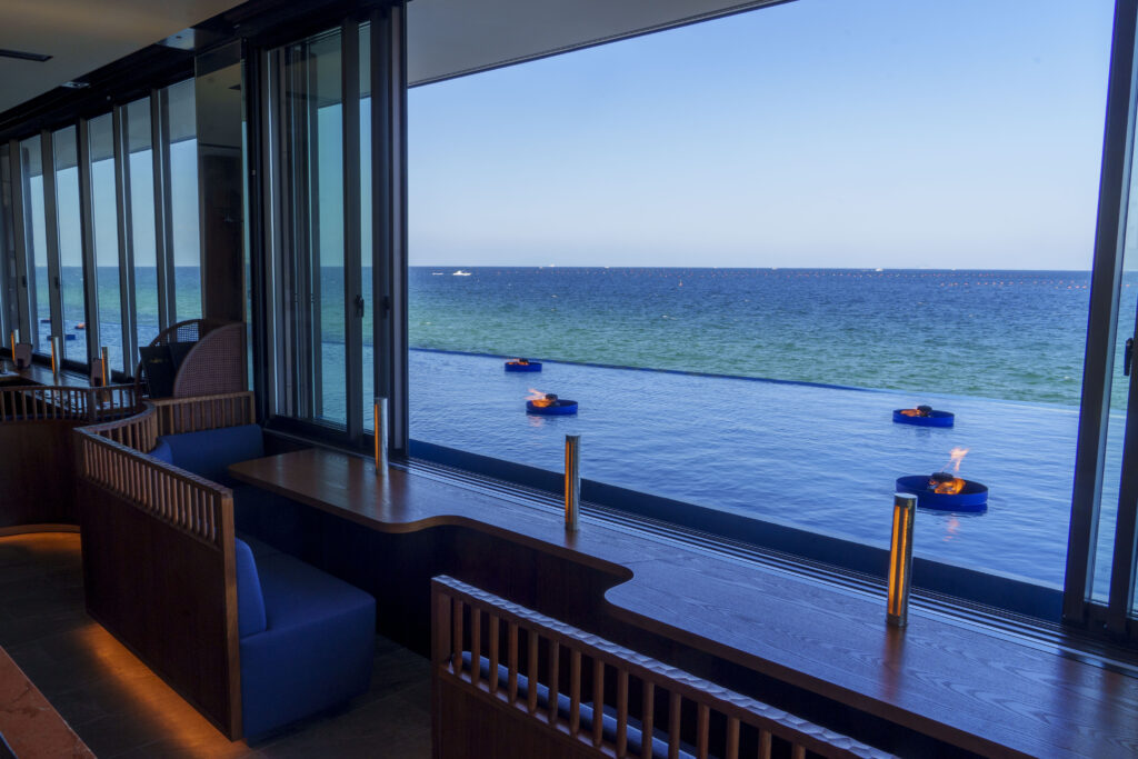 Oh-SOBARの店内は、海を望む開放感と、